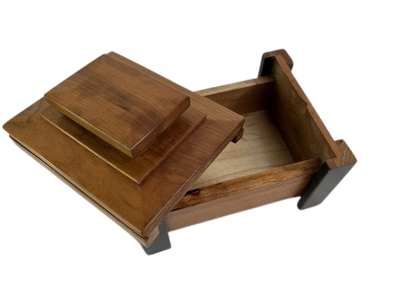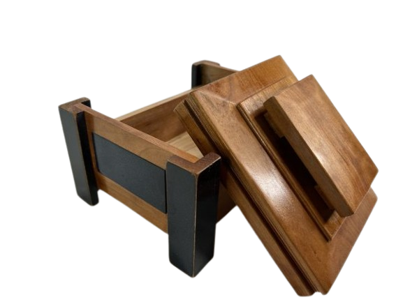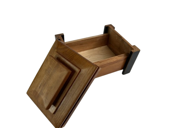 The Maple & Walnut Handcrafted Stash Box combines contrasting hardwoods to create a balanced and durable storage piece. The natural richness of walnut is complemented by lighter maple tones, highlighting the organic beauty of the wood grain.